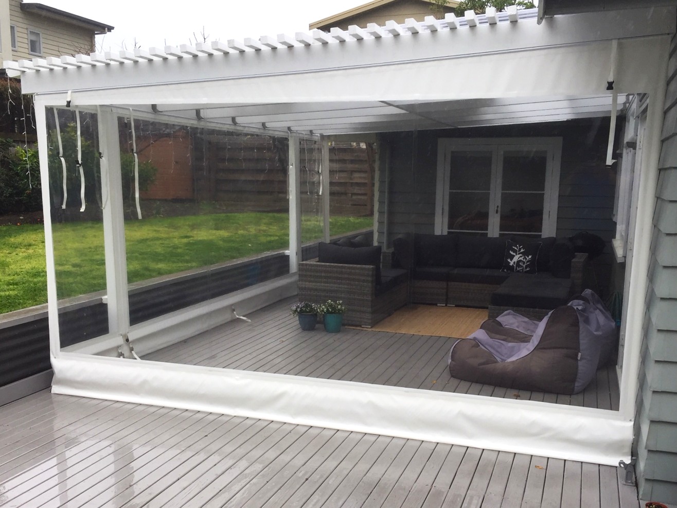 Simple handroll outdoor curtains clear plastic PVC